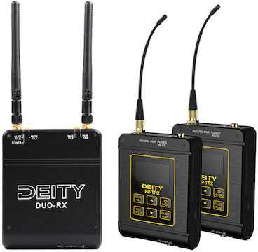 The Deity Deluxe 2-Person Wireless Omni Lavalier Mic System is a compact, wireless lav mic audio solution for DSLR and mirrorless cameras that allows you to capture two channel audio with a variety of outputs. Key features include: