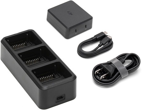 The DJI 100W Battery Charging Hub Kit includes a charging hub and power adapter that are designed to charge up to three Mavic 3 Flight Batteries. Key features include:
