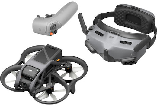The DJI Avata Explorer Combo consists of the DJI Avata, the Motion 2 Controller, and the Goggles Integra. Key features include: