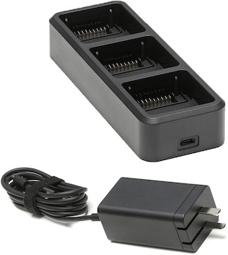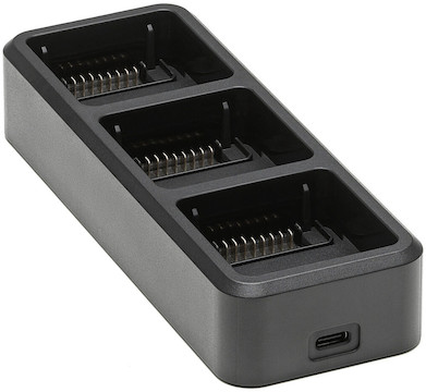 The DJI Mavic 3 Battery Charging Hub w/ 65W Portable USB Charger is an add-on accessory for the Mavic 3 / Mavic 3 Cine that offers an additional 3-battery charging hub for any extra batteries you add to your rental. The 65W USB Charger can charge a single Mavic 3 battery or RC Pro controller in about 1.5 hours, and the charging hub can detect which battery is least drained and recharge it first, giving you more flight time while the other batteries charge.
