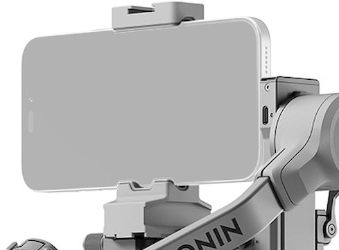 Use this phone holder with your DJI RS 4 Mini and instantly convert it from a camera gimbal to a smartphone gimbal. Unlike smartphone-only gimbals, this setup gives you a much greater range of motion and more creative shooting options. What’s more, this smartphone clamp has a cold shoe mount and 1/4"-20 screw port for attaching accessories like small LEDs and microphones.