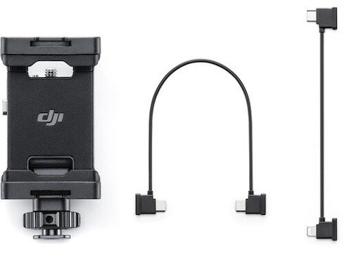 The DJI Phone Holder for SDR Transmission Receiver is an adjustable device designed to connect the SDR Transmission Receiver to a smartphone. Key features include: