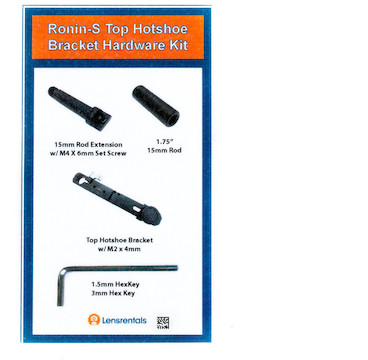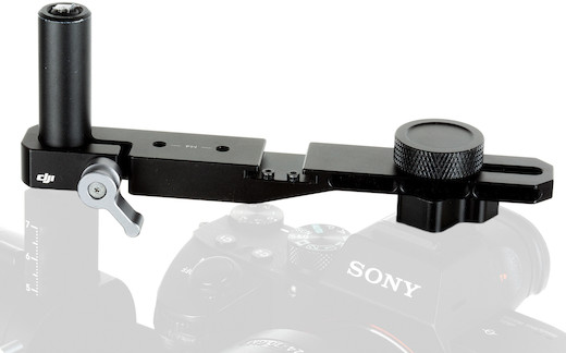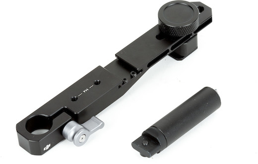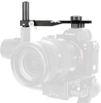 The DJI Ronin-S Top Hotshoe Bracket is an add-on accessory for the DJI Ronin-S gimbal that adds extra support for especially bumpy applications such as car mounting. The kit adds a 15mm rod extension to the tilt arm then connects that to a camera’s top shoe mount. Even though DJI calls this a hotshoe accessory, no electronic communication is made with the camera through the bracket.