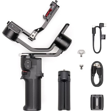 The DJI RS 3 Mini Gimbal Stabilizer is a lightweight gimbal stabilizer for mirrorless cameras designed to use with one hand. This is the predecessor to the updated RS 4 Mini. Key features include: