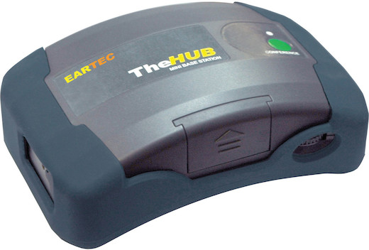 The Eartec HUB Mini Duplex Transceiver Base is a portable duplex repeater for select remote Eartec headsets like the UltraLITE wireless system. Key features include: