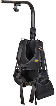 Three-Axis Gimbal Support. This body-worn support solution is comprised of a vest and support arm system that provide payload relief for backs and shoulders over the course of a long shoot. The support system redistributes the weight of your rig evenly across your torso, alleviating arm fatigue. This particular version is rated to support 24 to 28.5 lbs. of gear and includes an extended arm for gimbal work.