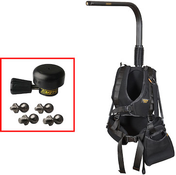 Quick Release Stabilization. The Easyrig Cinema Flex 500N Vest w/ 9" Arm and Quick Release replaces the standard, spring-loaded camera mount with a quick release system with both 3/8"-16 and 1/4"-20 ball studs so you can easily mount and adjust any of your gear. While the quick release mount can support greater load capacities, you’ll still be limited by the vest’s maximum capacity of about 28.5 lbs.