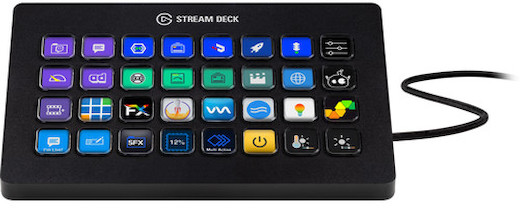 The Elgato Stream Deck is a USB 3.0 live streaming controller that centralizes essential tools and stream commands using programmable shortcut keys with customizable LCDs. This is the XL controller with thirty-two LCD buttons. Key features include:
