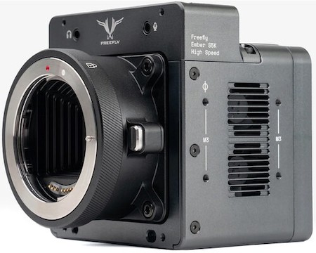 Capture high-resolution, high-speed 5K drone video with the Ember S5K Camera from FREEFLY. The compact S35 camera is designed for continuous high-speed recording and is small enough to mount as a drone payload. The Gpixel S35 sensor captures up to 5K resolution at 600 fps or up to 4K800 to capture clear high-speed slow-motion video. This S5K model features an Active EF mount for use with a variety of EF stock lenses, and it has a global shutter.