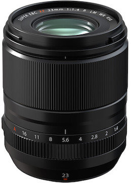 Fast, Versatile Wide-Angle Prime. With a focal length equivalent to 35mm after crop factor, the Fuji XF 23mm f/1.4 R LM WR gives you a high-quality wide-angle lens that’s ideal for low-light use. Additionally, the wide f/1.4 aperture enables you to capture images with a very shallow depth of field and great subject/background separation.