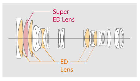 Optics. The 16-group/23-element optical formula offers a combination of five ED elements and one Super ED element to minimize chromatic aberrations and distortions throughout the zoom range. The Nano-GI coatings change the refractive index to suppress lens flare and ghosting in diagonal incident lighting, and Fuji’s standard HT-EBC coating helps eliminate traditional lens flare and ghosting.