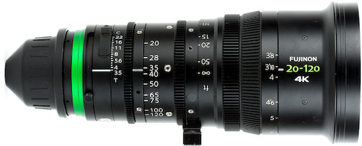 The Fujinon 20-120mm T3.5 Cabrio Premier w/o Servo Motor (PL) is a versatile, wide to telephoto cine-style zoom lens for high-end productions. Click here for the 20-120 w/ servo motor. Key features include: