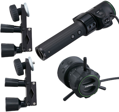 The Fuji Digipower Full-Servo Control Kit includes a focus position demand unit, a zoom rate demand unit, two mounting clamps, and two 12-pin communication cables. It is compatible with Fuji’s Premier Series, Select Series, or Broadcast servo lenses. The Fuji Digipower Full-Servo Control Kit provides remote control over the focus and zoom of these lenses for smooth and precise adjustments.