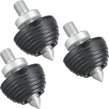 The Gitzo Retractable Spiked Tripod Feet Adapter Set attaches to the feet of any Series 2 or newer Gitzo tripod. The spikes protrude out of the feet to allow you to keep your tripod balanced on less-stable terrains, like sand or dirt, but you can retract the spikes into the rubber cups for use on stable surfaces, like indoor flooring or concrete.