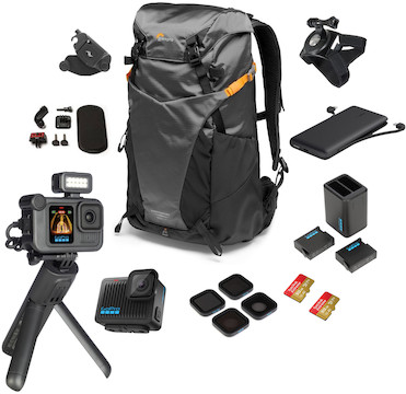 The GoPro HERO13 w/ HERO Compact POV Backpack Travel Kit includes: