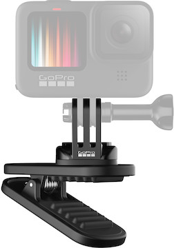 The GoPro Magnetic Swivel Clip for Select HERO / MAX Cameras is designed to safely clip your camera to a variety of surfaces ranging from your clothing to a table. This heavy-duty spring-loaded clamp secures to the camera with a magnetic mounting buckle and thumbscrew, and once attached, can rotate a full 360°.