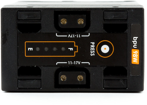 Both D-Taps on the BP-98UX have an 11-17V output meaning you can simultaneously power the camera and up to two low draw accessories like Teradek Bolt transmitters, monitors, and/or recorders when paired with compatible d-tap cables.