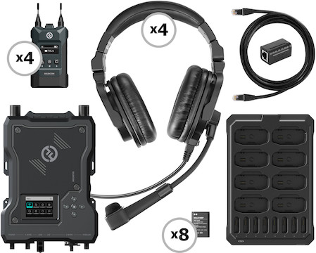 The Hollyland Solidcom M1 Full-Duplex 4-Beltpack Kit Dual-Ear includes: