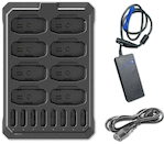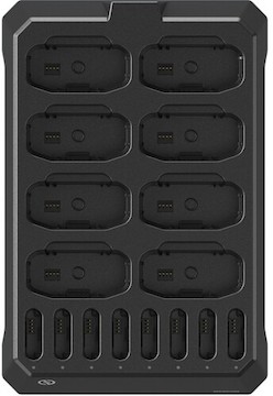 The Hollyland Solidcom M1 Multi-Unit Charger charges up to 8 M1 Beltpacks and 8 M1 Batteries. This unit is fueled via an AC power supply.