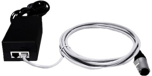 The Hollyland Solidcom M1 PoE Adapter w/ XLR to RJ45 Cable (5M) is a two connector adapter designed for use with the M1 Base Station. The two connectors include an RJ45 port, which enables PoE, and an XLR port. This rental includes both a XLR to RJ45 tanferring cable and a universal power cord.