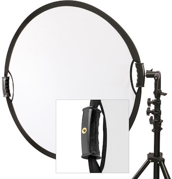 Easy-Grip Handles. The Impact 32" Silver/White Reflector with Handles has a large hand grip on either side to make it easier to position the light on your subject. It includes 3/8" mounts to attach the reflector to a light stand.