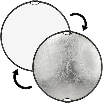 Two Reflective Surfaces. This reflector has a silver side that provides maximum reflectivity and create a high-contrast look to your subject. The white side provides a softer and more natural light balance.