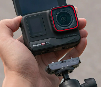 Quick-Release Mount. Quickly mount and dismount your action camera from your handheld gimbal or tripod with the included Insta360 Quick Release Mount. This multi-purpose, adaptable, and magnetic quick-release device features an ultra-thin design that makes it invisible during the capture of 360° shots, and an integrated sliding security lock prevents an accidental mount release.