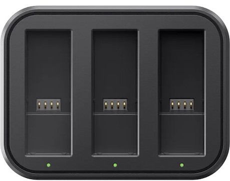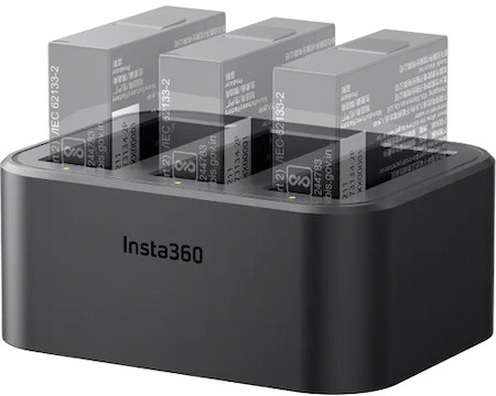 This Insta360 Fast Charge Hub for Ace and Ace Pro recharges up to three separately available batteries designed to power the Insta360 Ace or Ace Pro in just under an hour. Each slot is provided with status LED indicators and the unit is powered through the included 3-foot USB-C cable and charging adapter.