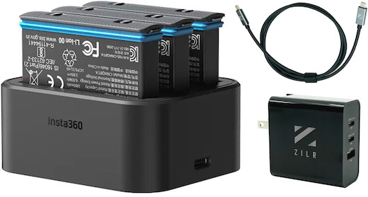 The Insta360 X3 3-Battery w/ Fast Charging Hub Power Kit is the dedicated battery kit for the Insta360 X3.