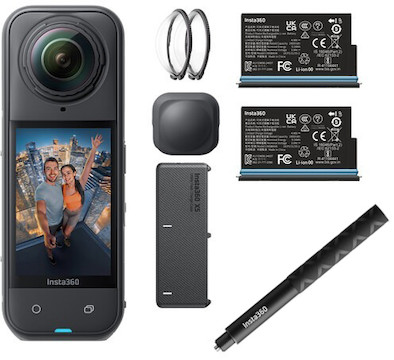 The Insta360 X5 Action Camera and Basic Accessory Kit is a essentials-only bundle providing you with extra power options and a selfie stick for the X5 Action Camera. Key features include:
