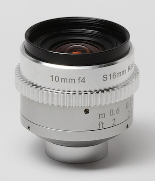 The Kish / Bolex Series 1 10mm f/4 is a fixed-aperture C-mount lens designed for the Digital Bolex D16 Cinema Camera. Key features include:
