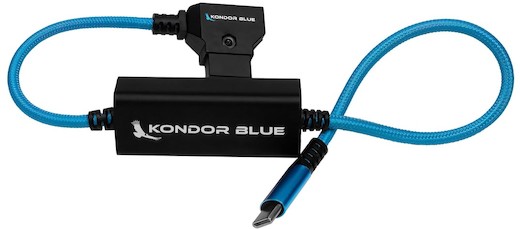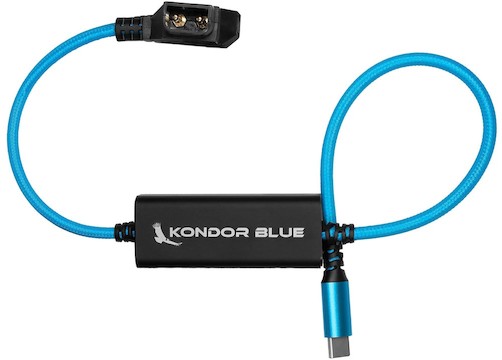 This 16 inch Kondor Blue D-Tap to USB-C Power Cable is designed to power a compatible camera, laptop, or accessory with a USB-C input. Key features include: