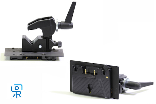 Our man Kris loves using Anton Bauer batteries to power his gear. But with specific adapters needed for various pieces of gear, he finally got fed up and made this adapter himself so he could use his A-B batteries to power almost anything. It’s basically a Gold Plate fixed directly to a Superclamp. Mount it to a tripod, rod system, light stand, table, shelf … to anything, really. Once mounted, the battery is used to power all of your devices.