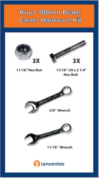 The Kupo 100mm Brake Caster Set adds rubber wheels to the Kupo Low Mighty Stand. Key features include: