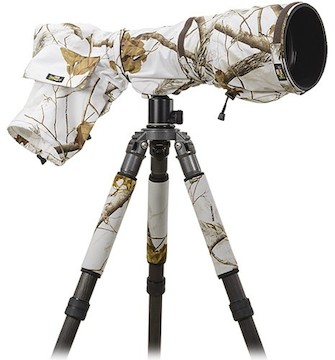 The LensCoat RainCoat Pro (Realtree AP Snow) is a weather-resistant, white camo-printed lens cover designed to protect DSLR cameras and lenses ranging from 300mm to 800mm. Key features include:
