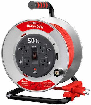 The Link2Home 50-foot Large Metal Open Extension Reel 4-Outlet is a portable cable solution offering a 50ft high visibility cable with four integrated outlets. Key features include:
