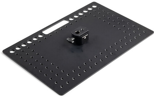 Built using lightweight aluminum, the TetherGear Laptop Deck from Manfrotto provides users with a stable platform that safely and securely mounts a laptop on top of grip and support equipment, including lighting stands, tripods, and support arms. Featuring a “cheese plate” design, users will be able to take advantage of multiple 3/8" threaded mounting holes in key locations, allowing laptops of almost any size to be safely secured using the included anti-slip mounting hardware. The hole configuration also incorporates a cable management feature to help prevent cables from disconnecting from devices if they are accidentally pulled.