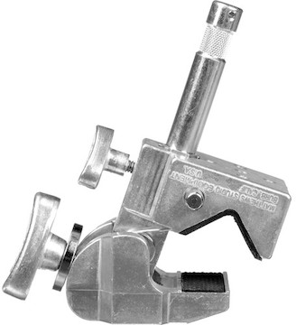 An essential tool in just about any grip’s setup, the Matthews Super Mafer clamp and baby pin combo offer highly versatile mounting solutions that can be configured with C-stands, C-stand grip heads, Magic Arms, lighting fixtures, and more. The Mafer has a bite range of about 3/8" up to 2" for clamping onto poles and stands and the pin has anti-twist knurling to keep your attachments secure.