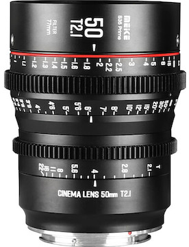 The Meike 50mm T2.1 Super 35 Cine (Canon EF) is designed with a 33.6mm image circle to cover Super35 sensor cameras. Key features include: