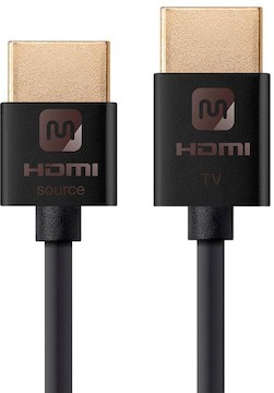 The Monoprice 15-foot Ultra Slim High Speed HDMI Male-Male Cable is a high-quality, ultra-thin cable with full-size male type-A connectors. It’s capable of transmitting a 4K signal at 60 Hz. Key features include: