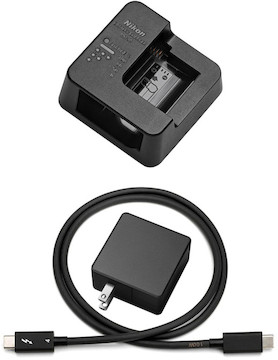 EH-8P Charger. The Nikon EH-8P USB Charger is a versatile power source designed to charge batteries inside compatible cameras or battery packs that support USB charging. This rental includes a Thunderbolt USB-C cable to supply constant power to a camera or power pack via USB Power Delivery.