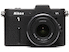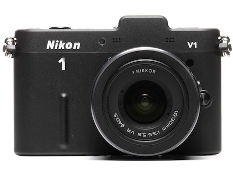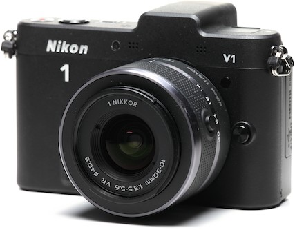 The Nikon 1 V1 has a 10 Megapixel CX size sensor (13.2 × 8.8mm which is a 2.7x crop factor), and has a 73 point hybrid phase detection/contrast detection auotofocus. The AF delivers 10 frames-per-second capture in autofocus mode and 60fps in manual mode. It handles ISO up to 3200 (6400 in expanded mode). The included 10-30mm f/3.5-5.6 VR lens is equivalent to a 27-81mm after sensor crop.