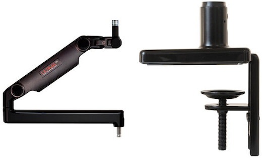 The O.C. White ProBoom Ultima Gen2 Adjustable Mic Arm w/ Clamp is a desk-mountable microphone boom arm capable of safely mounting up to 5 pounds of audio gear. Key features include: