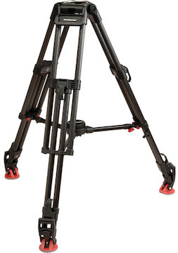 The OConnor 30L Carbon Fiber Tripod System consists of their 30L 2 stage carbon fiber tripod legs, a removable mid level spreader and 3 rubber feet that snap over the legs’ dual foot spikes.