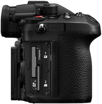 • The GH7 has two card slots: 1x CFexpress Type B/XQD and 1x SD. The CFexpress slot is capable (with the right card) of Apple ProRes RAW and 800 MB/s 4:2:2 10-bit footage while the SD slot can handle bitrates up to 600 MB/s. A good CFX option is the ProGrade Digital 1TB Gold 3400 MB/s. Note that cards larger than 2TB cannot be used. A good SD option is the SanDisk SDXC 128GB Extreme PRO 300MB/s UHS-II V90. Check out this list of fully-tested cards from Panasonic.