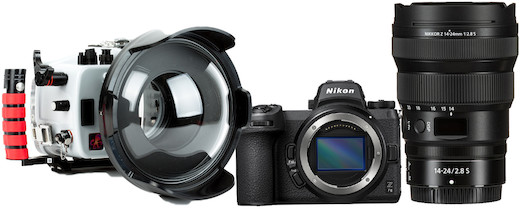 The Ikelite Nikon Z7II Underwater Camera Kit is a full-frame camera, 14-24mm lens, and underwater housing combo that’s waterproof down to 200 feet. Key features include: