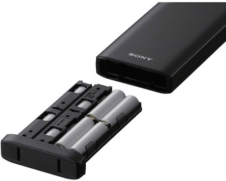 The Sony FA-EBA1 External Battery Pack is powered by four or eight AA batteries, which aren’t included with this rental. Rechargeable AA Battery 8-Pack Travel Kit is available as a separate rental item.