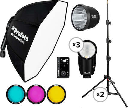 This Profoto A10 AirTTL-C Studio Photography Kit for Canon is a package we compiled that provides you with the necessary power, support, and accessories to utilize the three included Profoto A10 AirTTL-C Studio Light for Canon. Feel free to click on any of the highlighted links below for additional information and specifications!