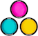 Peacock blue, rose pink, and yellow gel filters