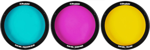 The Profoto Clic Creative Gel Kit includes three Profoto Clic Gel filters: